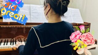ピアノコースの中学生の生徒さん。中学校合唱コンクールピアノ伴奏者に選ばれよく練習を積まれました♪合唱曲ピアノ伴奏者として立派な演奏でした。ピアノの演奏能力や技術面は勿論、表現力が昨年度よりも格段に成長されました!積極的に前進されています。